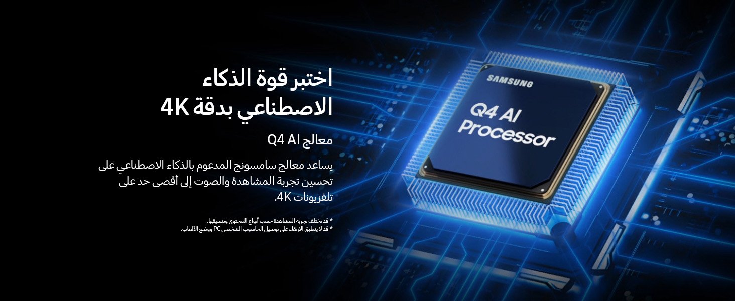- يساعد معالج الذكاء الاصطناعي في تلفزيون سامسونج على تحسين أي تجربة عرض وصوت لأجهزة تلفزيون 4K.